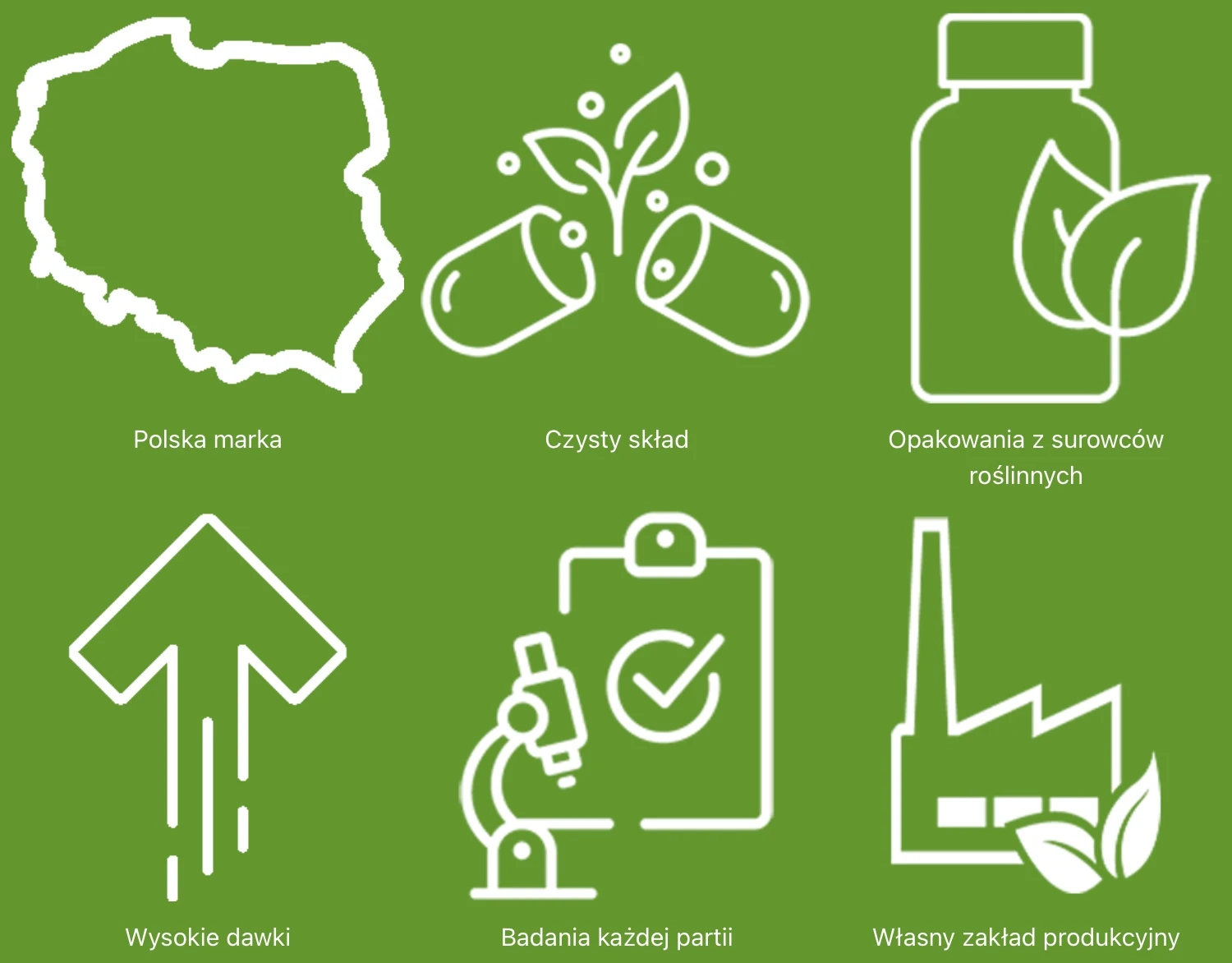 - 600 mg ekstraktu 10:1 w 1 kapsułce