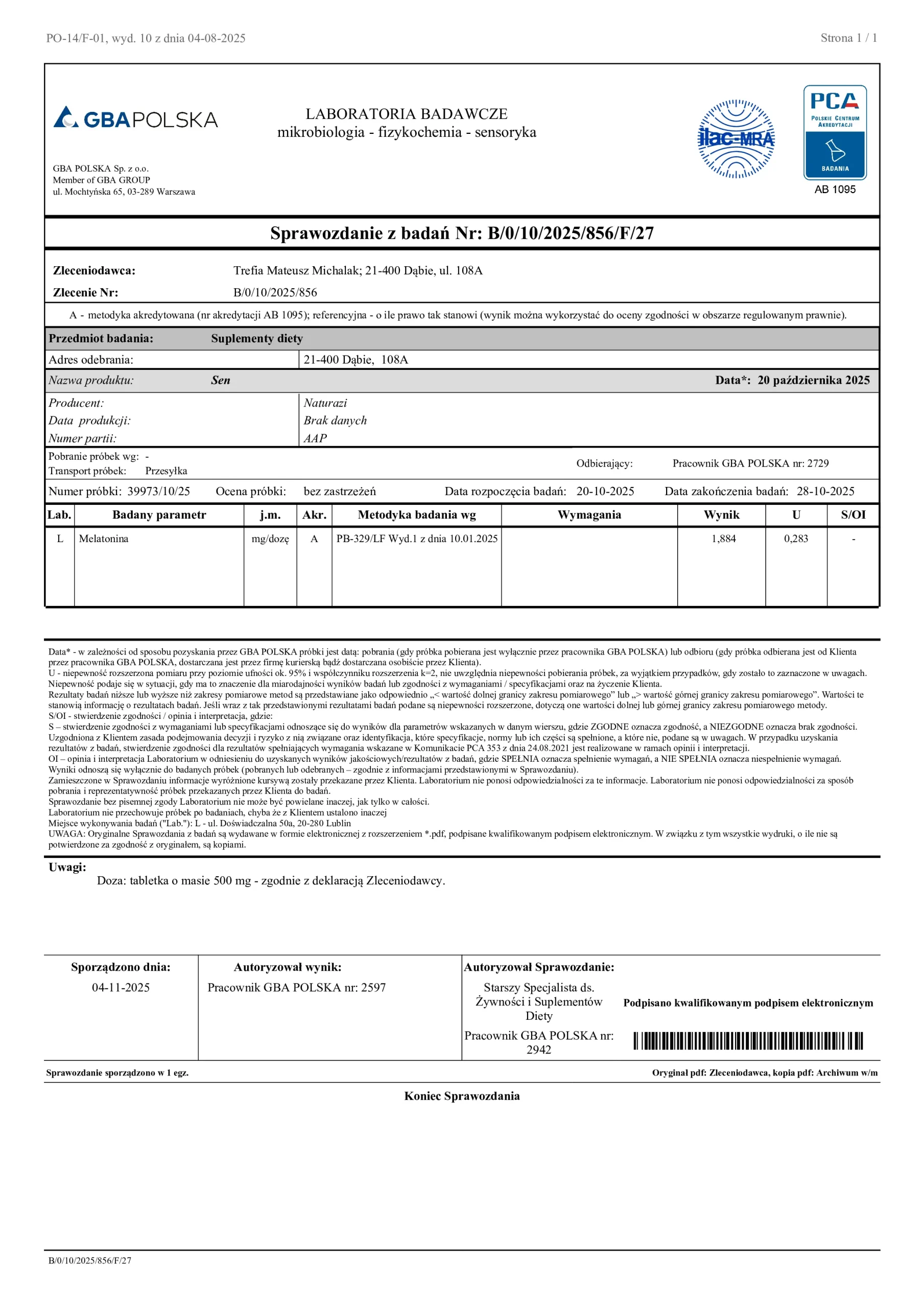 Systematycznie rozszerzamy zakres prowadzonych analiz oraz nawiązujemy współpracę z kolejnymi laboratoriami w całej Polsce. Naszym celem jest, aby każda partia produktów Naturazi posiadała potwierdzoną przez akredytowane laboratoria zawartość substancji aktywnych oraz czystość.