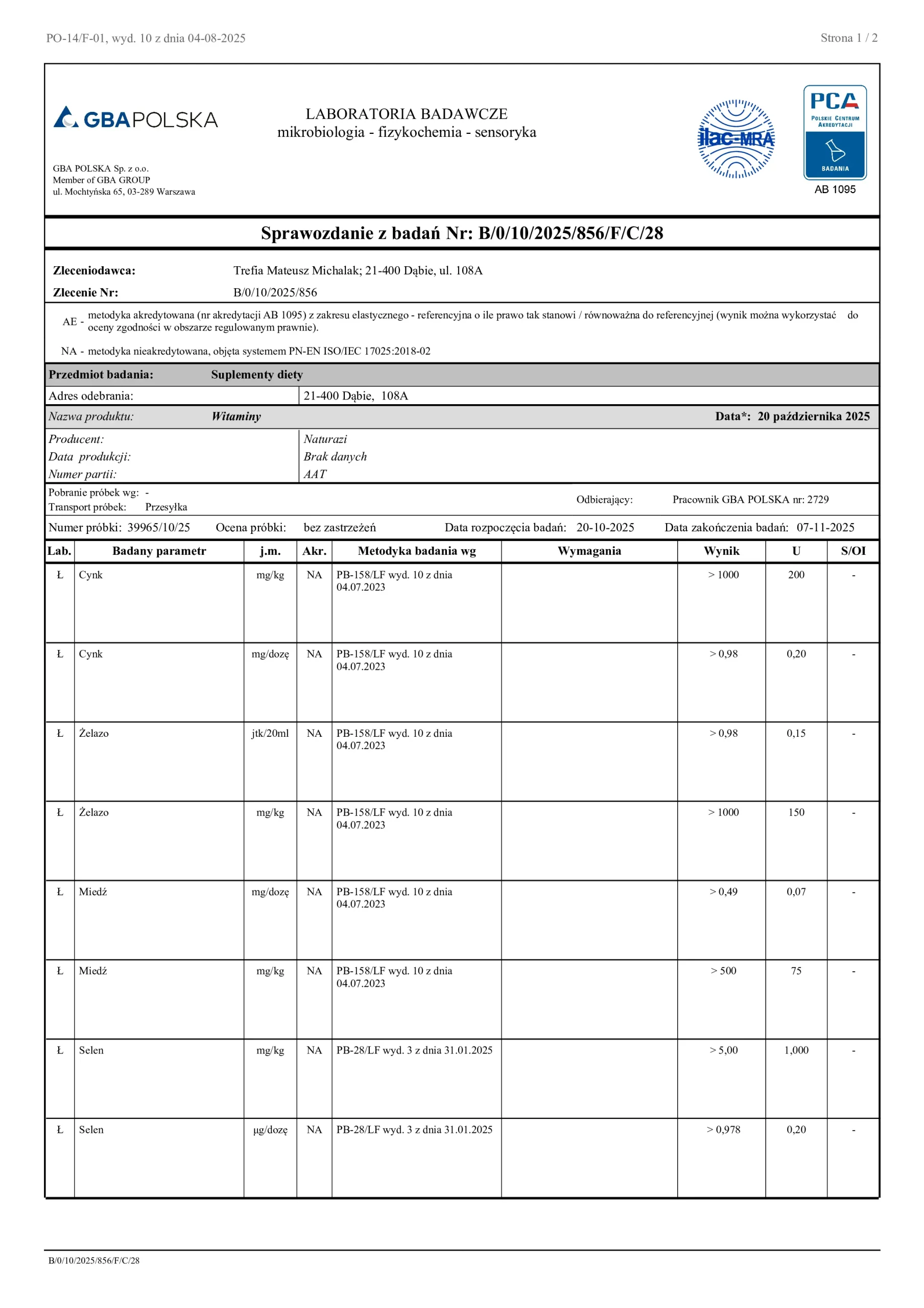 Systematycznie rozszerzamy zakres prowadzonych analiz oraz nawiązujemy współpracę z kolejnymi laboratoriami w całej Polsce. Naszym celem jest, aby każda partia produktów Naturazi posiadała potwierdzoną przez akredytowane laboratoria zawartość substancji aktywnych oraz czystość.