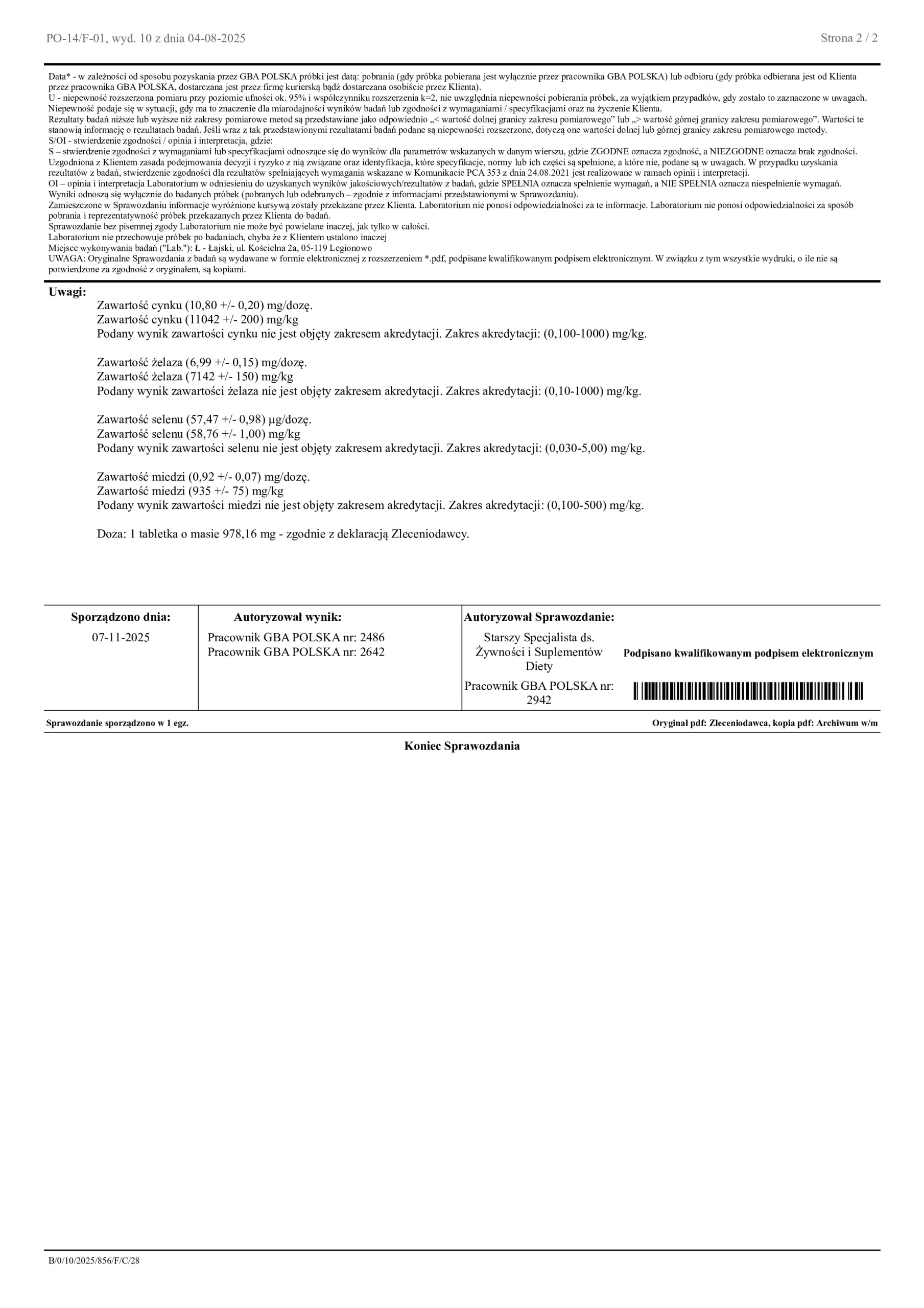 - Witamina B6 (P-5-P) – 2,8 mg (200%)